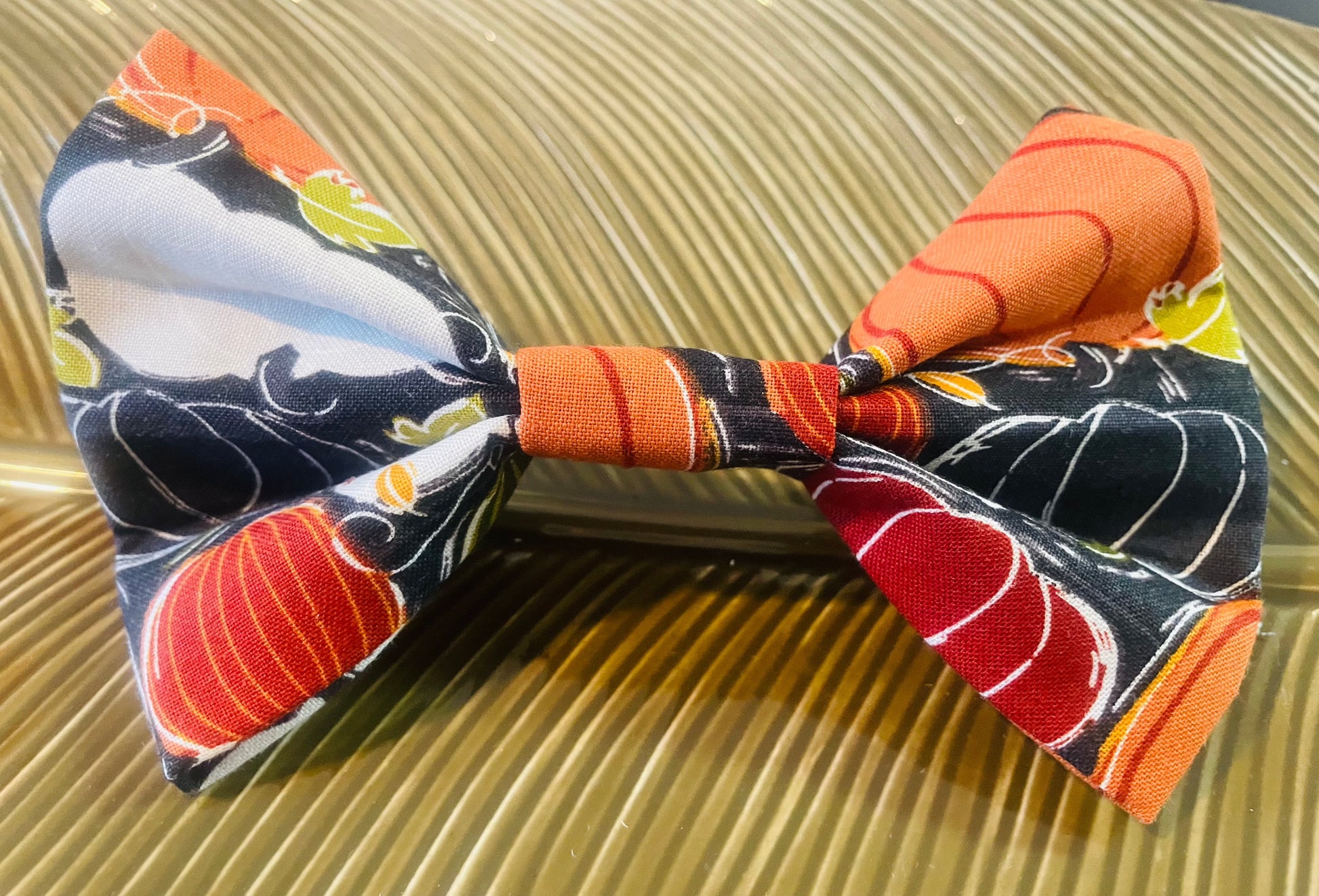 Black pumpkin print bow tie. Available in XS, S, M, L, XL